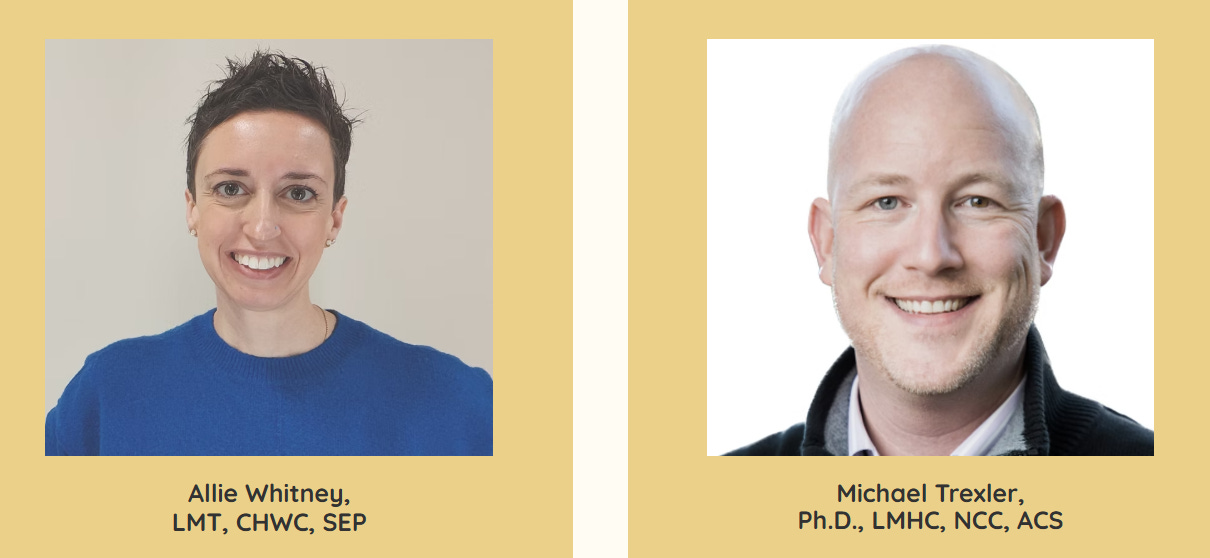 We explore these themes and so many more, hitting them from both a “top-down” (cognitive) and a “bottom-up” (somatic) perspective, which is what all the experts in the field have acknowledged is the best and most comprehensive way to bring about real, lasting change. This day-long workshop is led by yours truly and co-taught with Dr. Michael Trexler of Peace of Mind Counseling & Wellness in Indy.